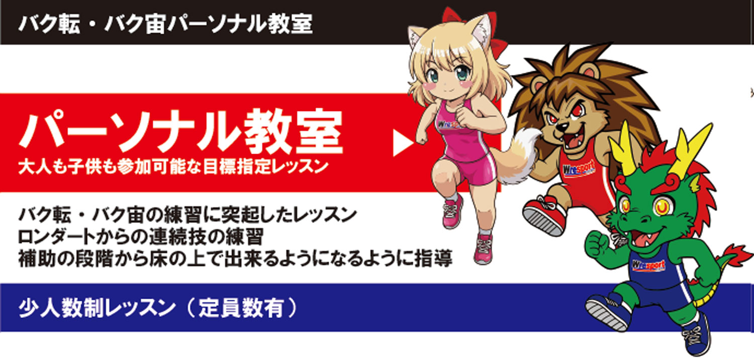 バク転やバク宙などを最短で覚えたい方にお勧めのコースとなります。バク転・バク宙以外のスキルも最短で身につける事が出来る特別なコースとなります。