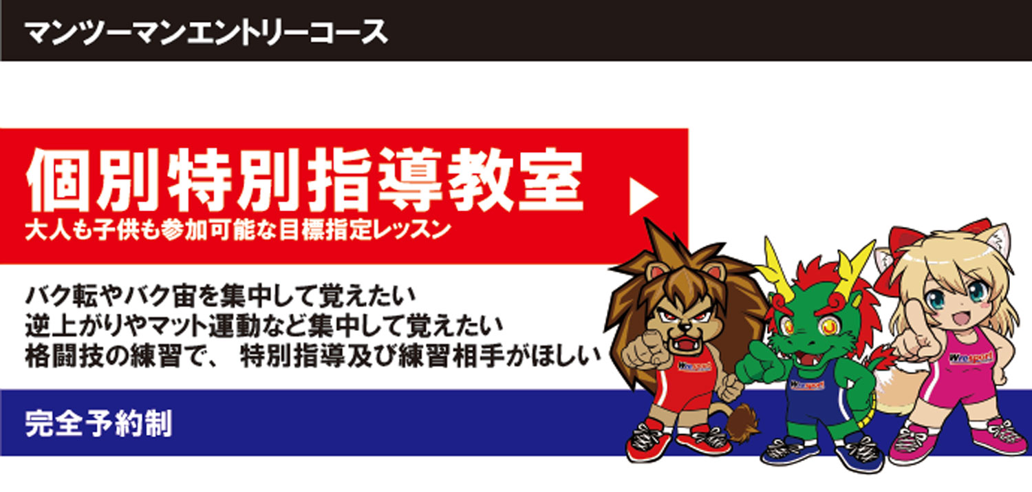 完全個別指導のレッスンコースとなります。各種スキルを最短で身につけたい方にお勧めです。試合前など格闘技など練習相手及び集中練習も可能です。