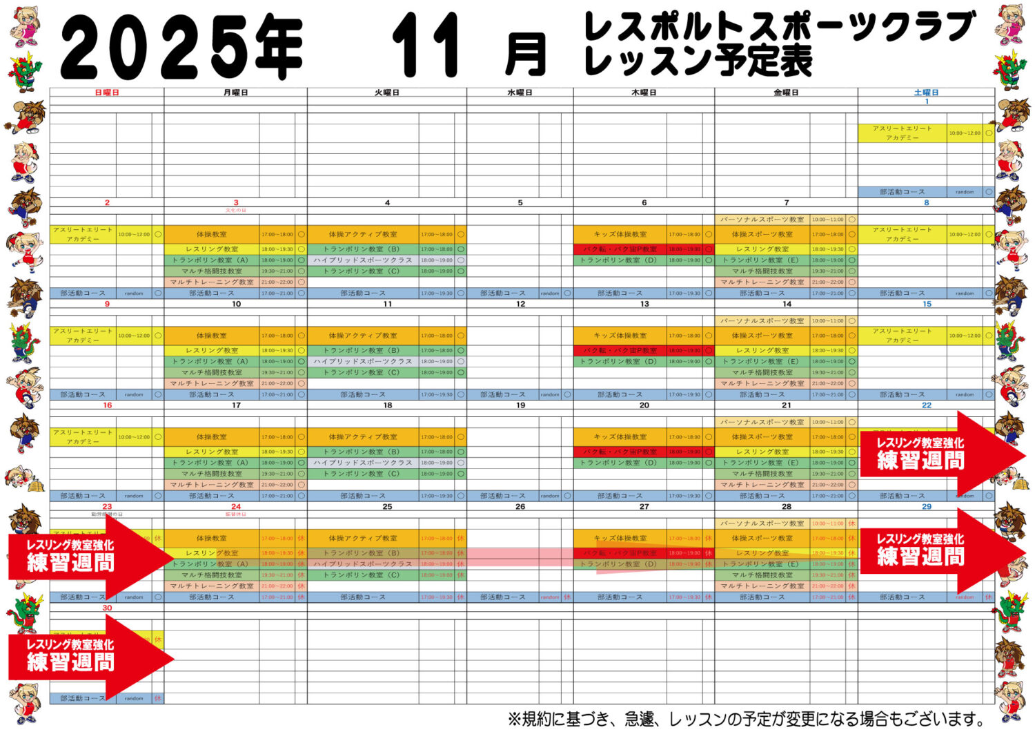 レスリング教室(対象:園児(5歳以上)~大人);5歳未満に関して、キッズ体操教室など活動内容によって入会可能。