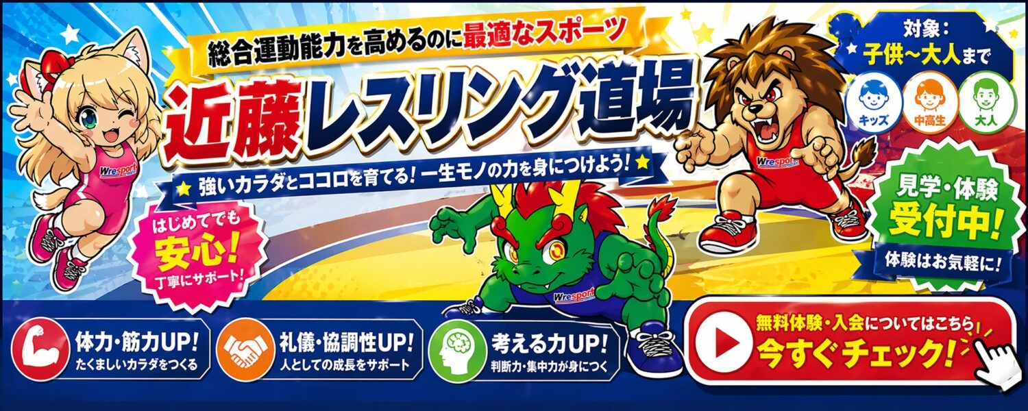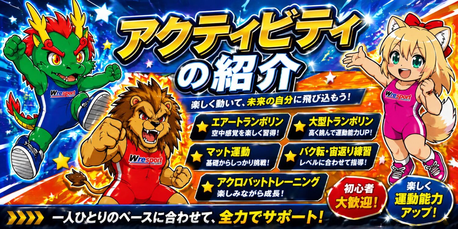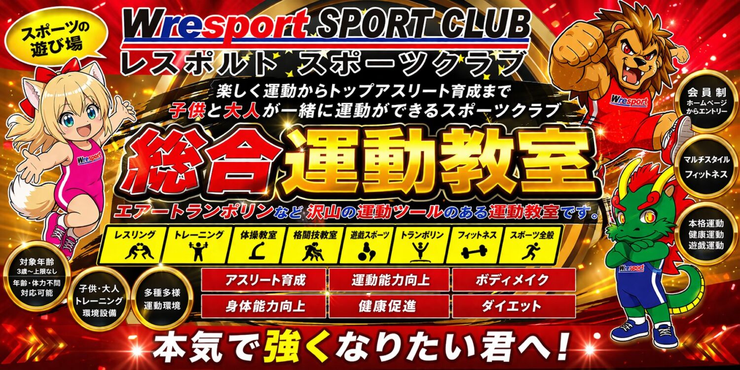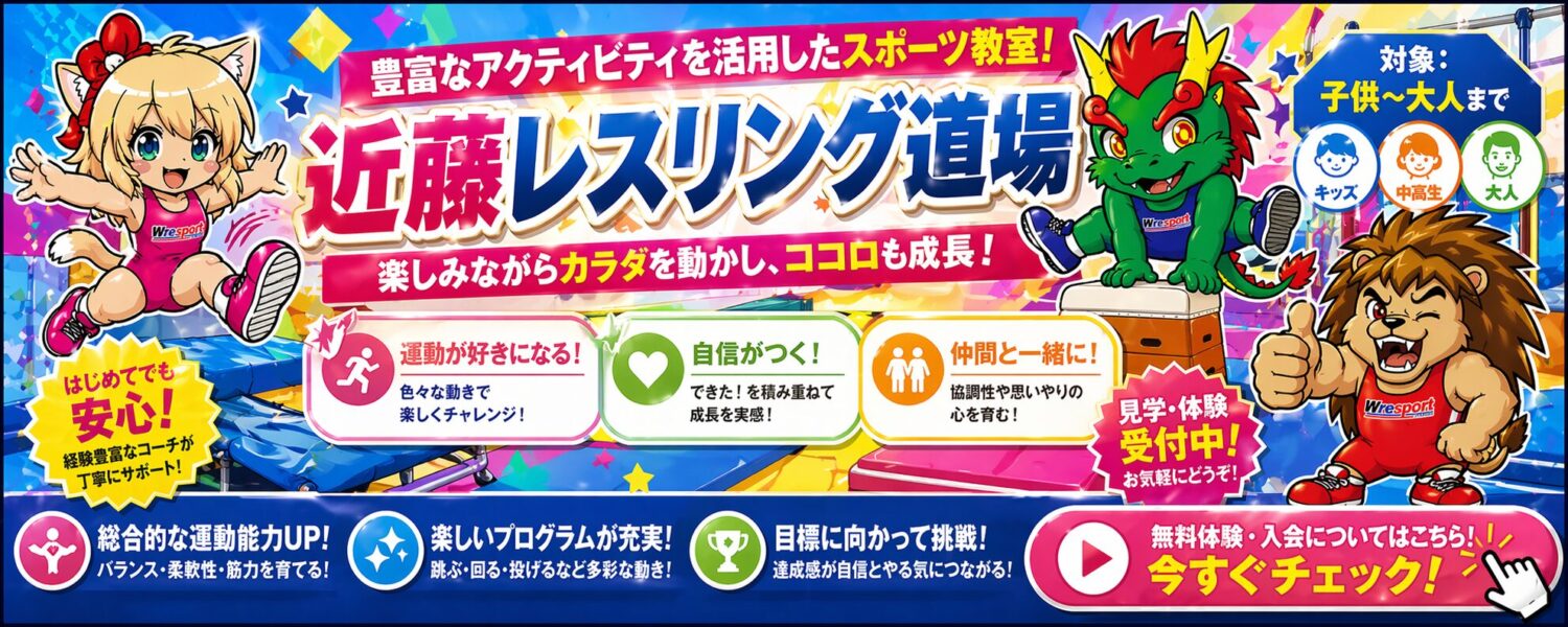 レスリング教室(対象:園児(5歳以上)~大人);5歳未満に関して、キッズ体操教室など活動内容によって入会可能。