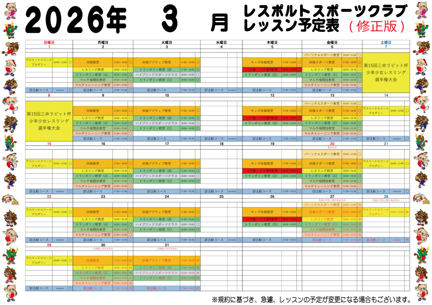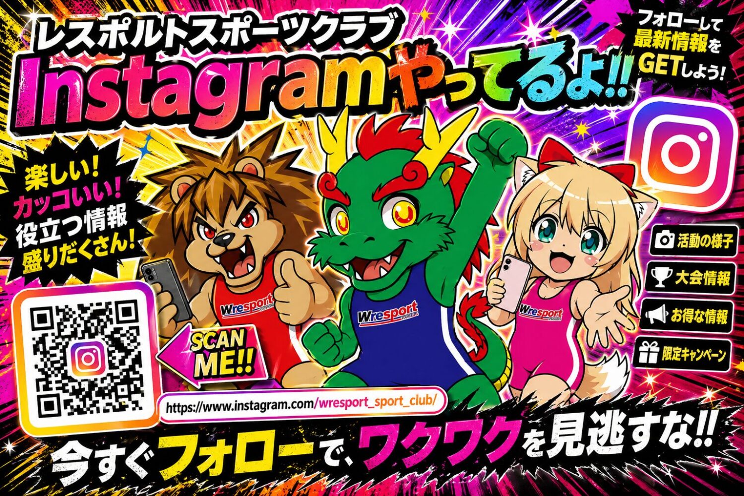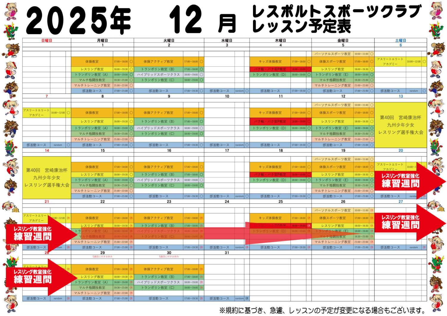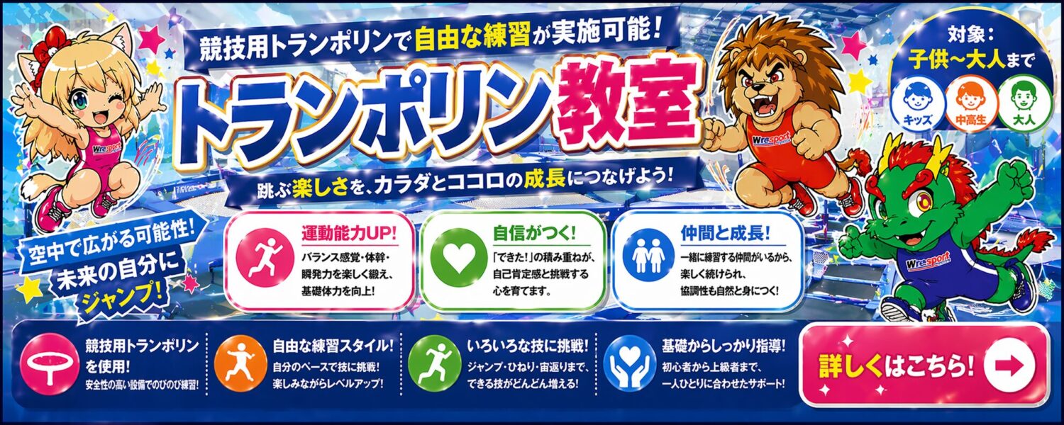 レスリング教室(対象:園児(5歳以上)~大人);5歳未満に関して、キッズ体操教室など活動内容によって入会可能。