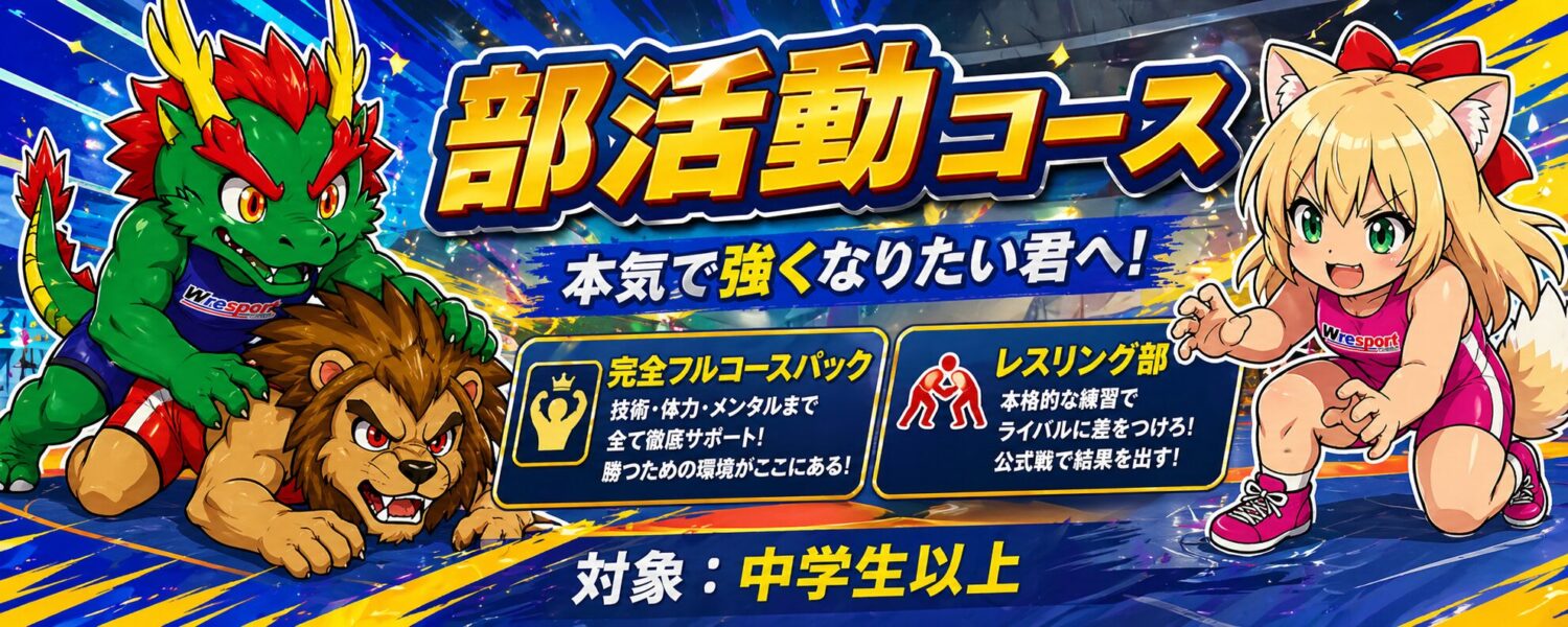 体操教室より難度を少し上げたコースとなります。レスリングのマットにて、レスリング特有のマット運動をする運動やトレーニング運動がメインの教室です。