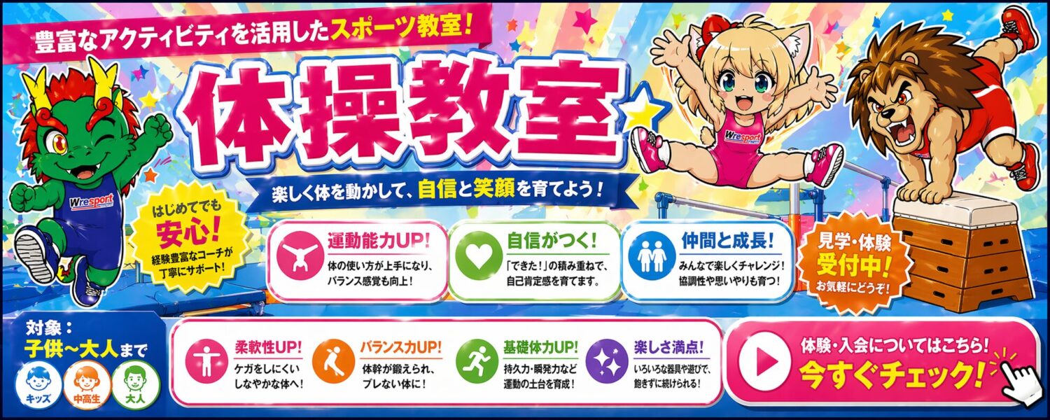 体操スポーツ教室(対象:小学生~大人【園児も条件により可】)